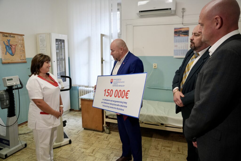 Ministerstvo cestovného ruchu a športu SR poskytne finančný príspevok vo výške 150 000 € Univerzitnej nemocnici Bratislava (UNB) na zakúpenie novej spiroergometrickej linky pre oddelenie telovýchovného lekárstva. Táto podpora umožní obnoviť kľúčové prístrojové vybavenie, ktoré je nevyhnutné pre vykonávanie preventívnych lekárskych prehliadok športovcov a pre zabezpečenie kvalitnej diagnostiky a starostlivosti.