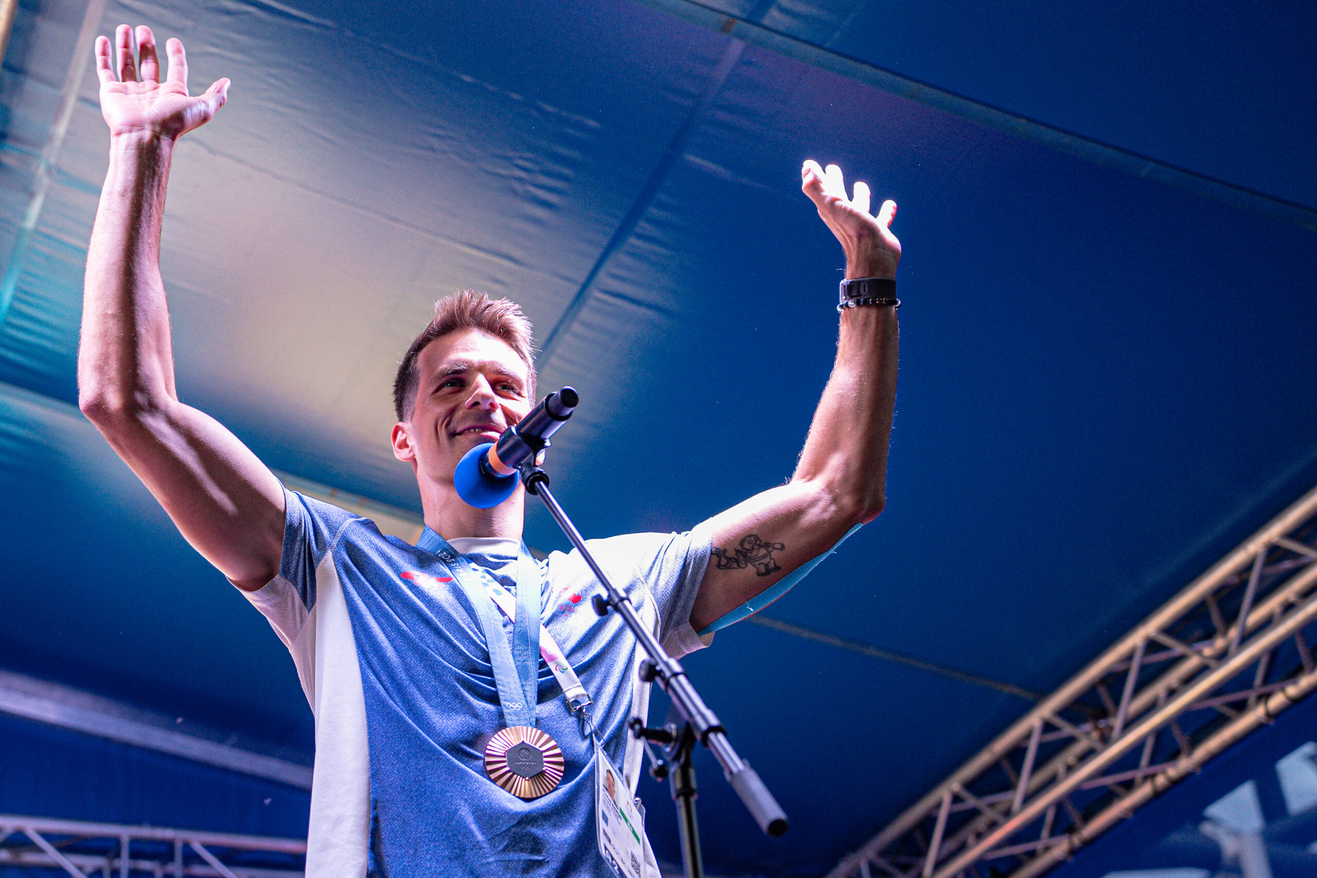 Olympijský festival na bratislavskej Kuchajde dnes večer ožil bronzovými olympijskými farbami. Vodný slalomár Matej Beňuš, ktorý získal pod piatimi kruhmi v Paríži bronzovú medailu, oslávil priamo na festivale svoj úspech a priniesol so sebou nádych olympijského ducha.