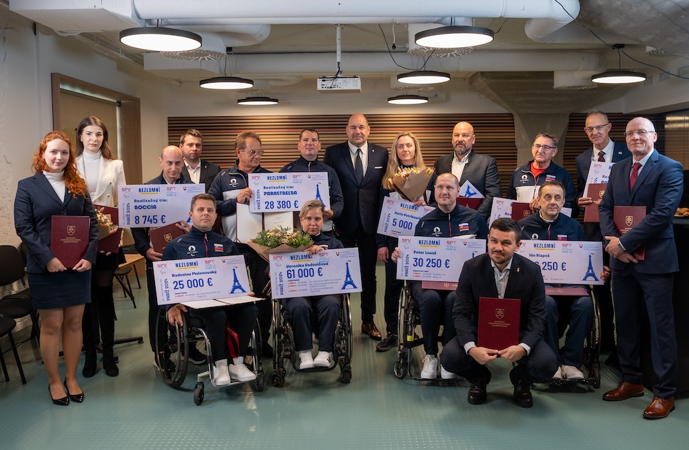 Slovenský paralympijský výbor využil túto slávnostnú príležitosť a odovzdal úspešným paralympionikom symbolické šeky za umiestnenie na POH.
