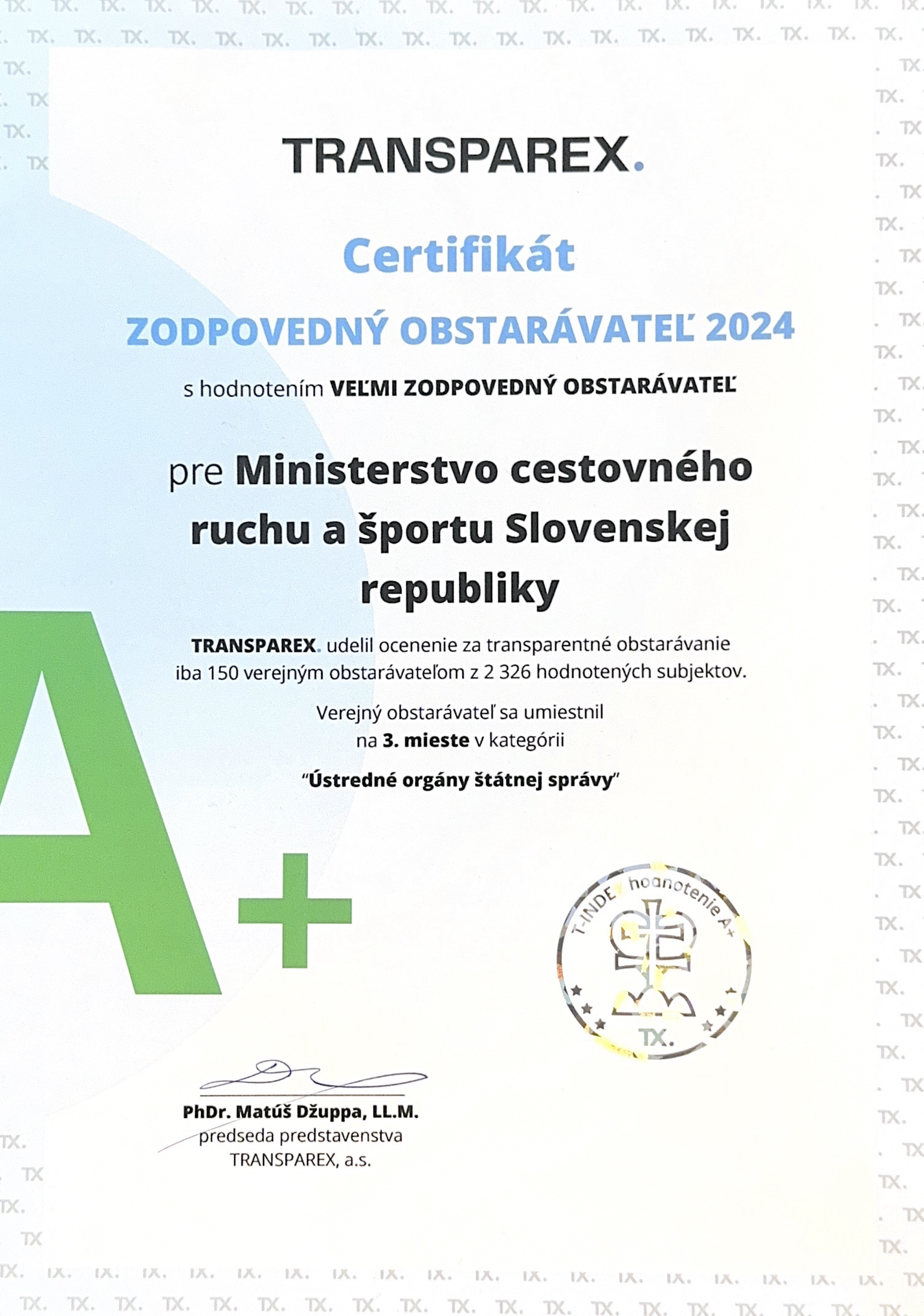 Podľa hodnotenia portálu TRANSPAREX sme naše verejné obstarávania za rok 2024 realizovali profesionálne s dôrazom na vysokú hospodárnosť a zabezpečenie čestnej hospodárskej súťaže. Zakázky sme realizovali rýchlejšie a efektívnejšie, než je celkový priemer.